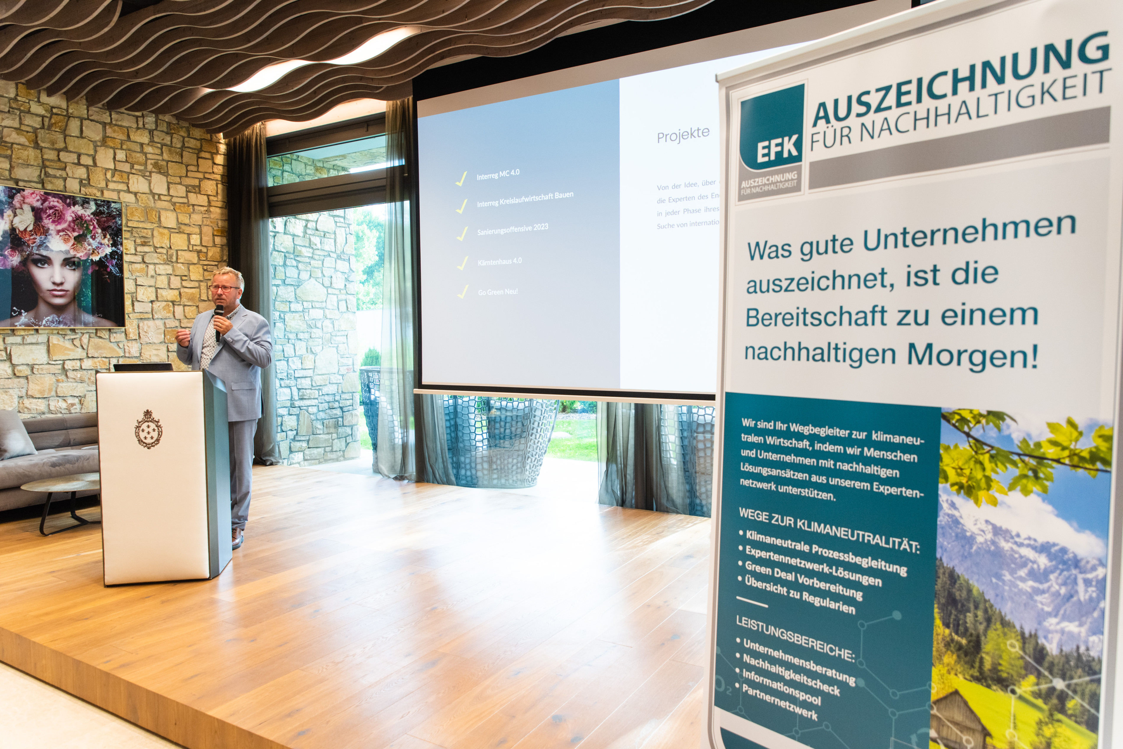 Über 400 Unternehmen befinden sich bereits im Netzwerk des Energieforums Kärnten und anlässlich der Sommerlounge, vergangenen Donnerstag, wurde in festlich-geselligem Ambiente vielen Unternehmerinnen und Unternehmern die EFK-Auszeichnung für Nachhaltigkeit überreicht. Um diese Auszeichnung zu erhalten, müssen Unternehmen nachhaltige Produkte anbieten und einen Nachhaltigkeitscheck absolvieren. Die Unternehmen kommen aus ganz Österreich und das Spektrum reicht von EPU bis zum internationalen Konzern. Förderungen für nachhaltige Projekte werden von verschiedenen Ministerien, Bundesagenturen, Förderbanken oder von den Bundesländern selbst bereitgestellt.